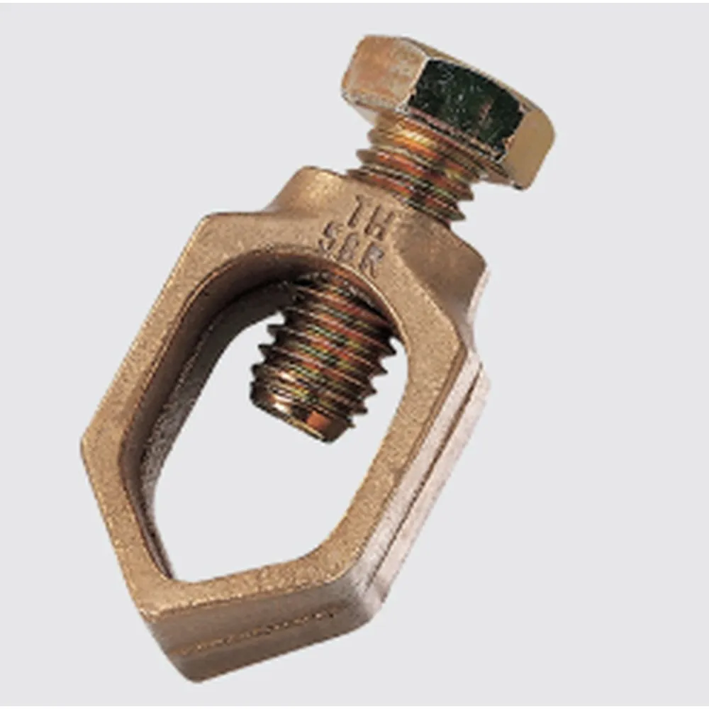 Material: Grampo em bronze, parafuso em liga de cobre (TH-R) ou grampo em liga de cobre, parafuso em aço zincado eletrolítico (TH).